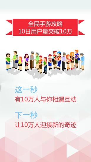 新浪游戏频道旗下移动端战略产品“全民手游攻略”APP自11月1日正式登陆双平台以来,凭借着自身过硬的产品素质,在短时间内便获得众多手游玩家的追捧。上线两周,“全民手游攻略”APP用户量便突破10万大关,周活跃度更是达到了惊人的95.7%。这个数据再次证明了,新浪游戏频道坚持移动为先的产品发展策略和对玩家需求的了解。“全民手游攻略”APP必将成为玩家的必备手游神器。